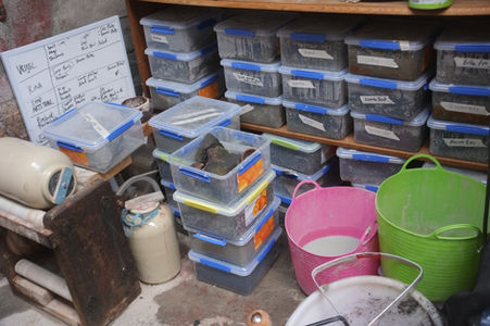 Studio based: grinding, preparing, glazing samples, testing rocks, documenting, and photographing field specimens.